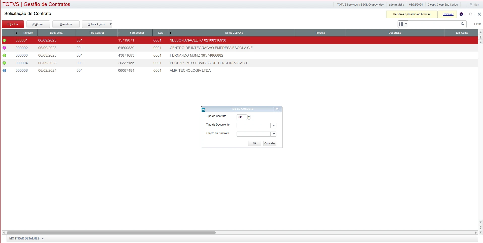 Buscar o campo ambiente Gestão de Contratos