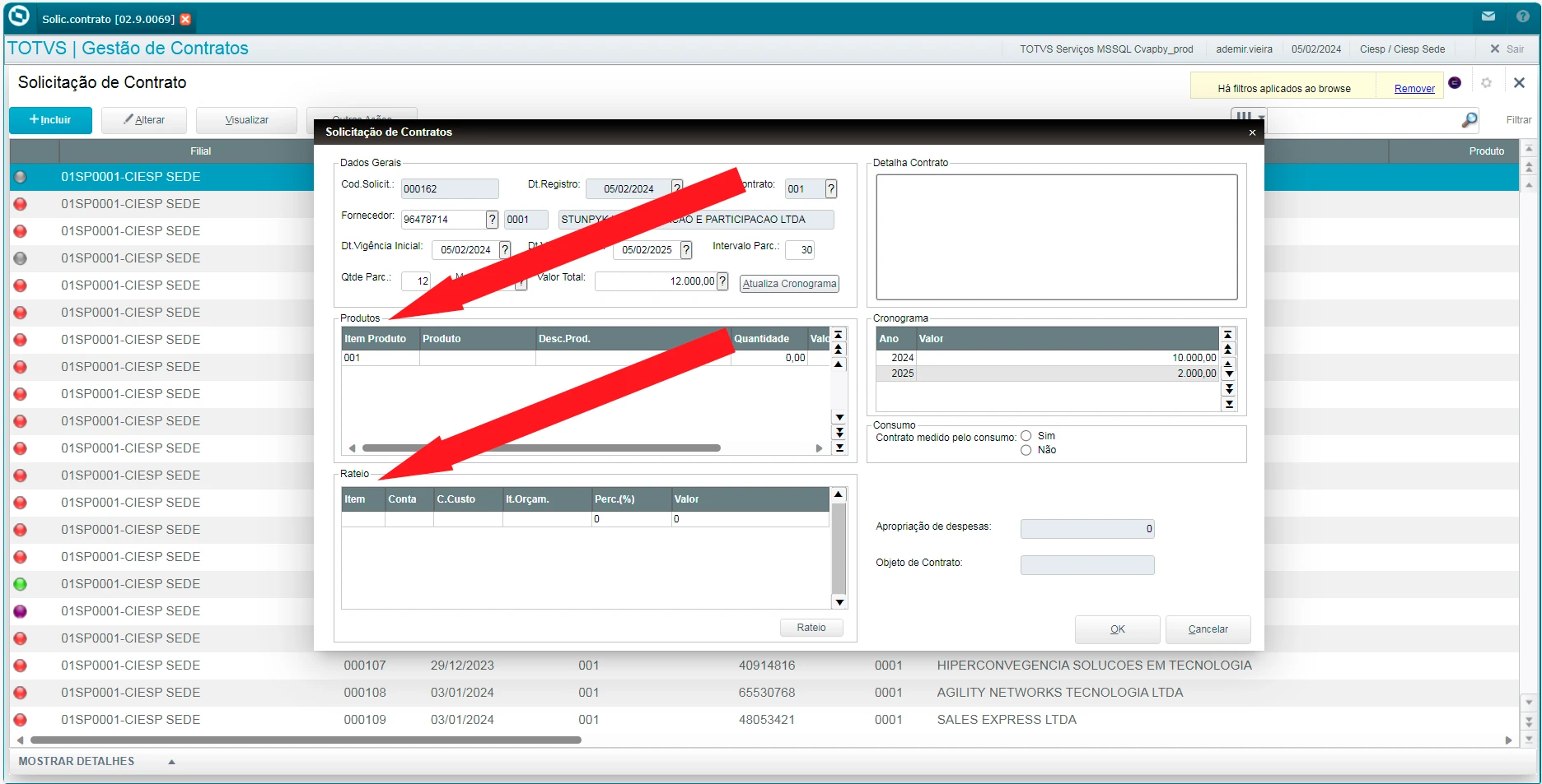 2 - Preencher área Rateio