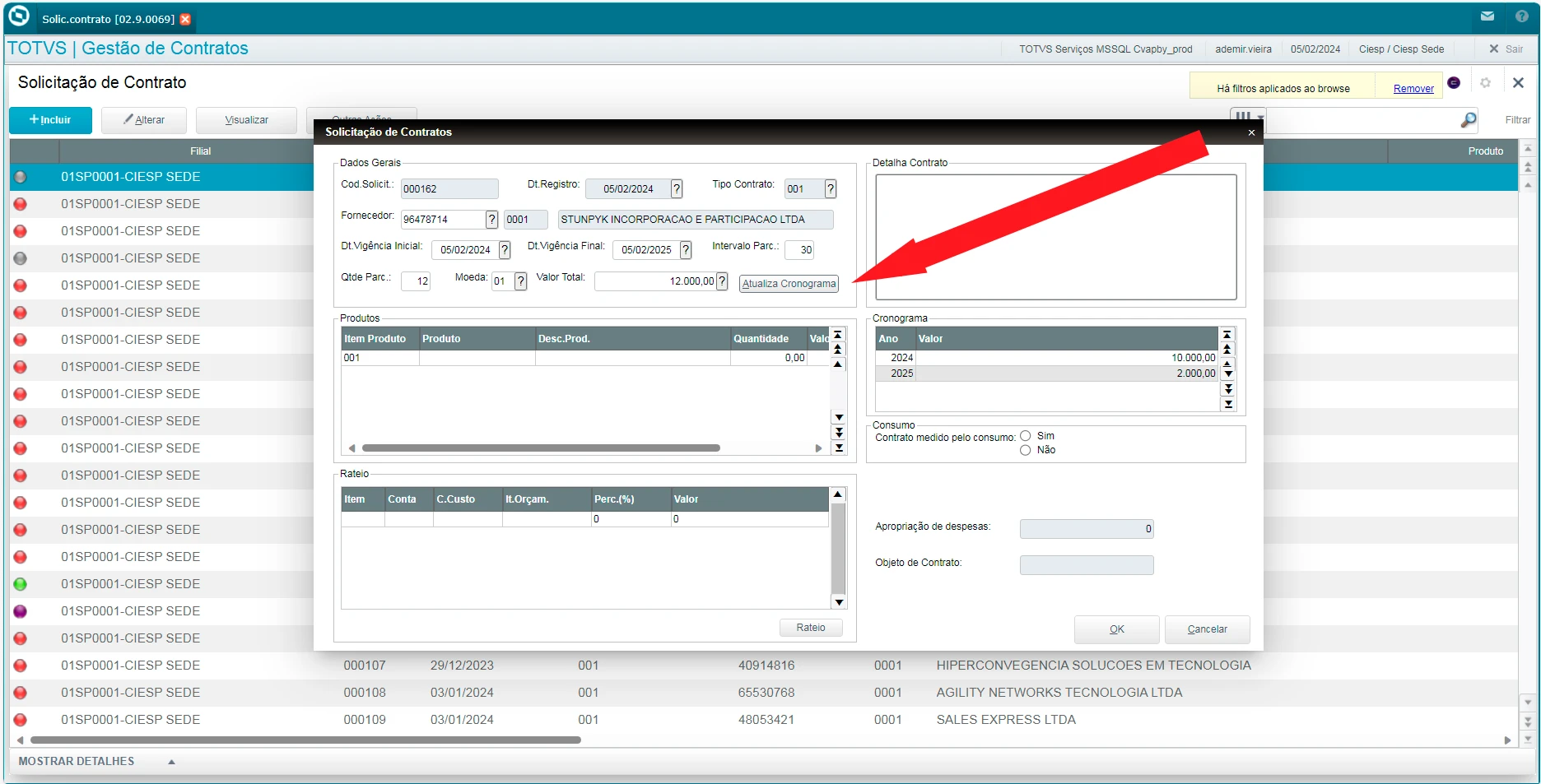 2 - Clicar no botão Atualizar Cronograma